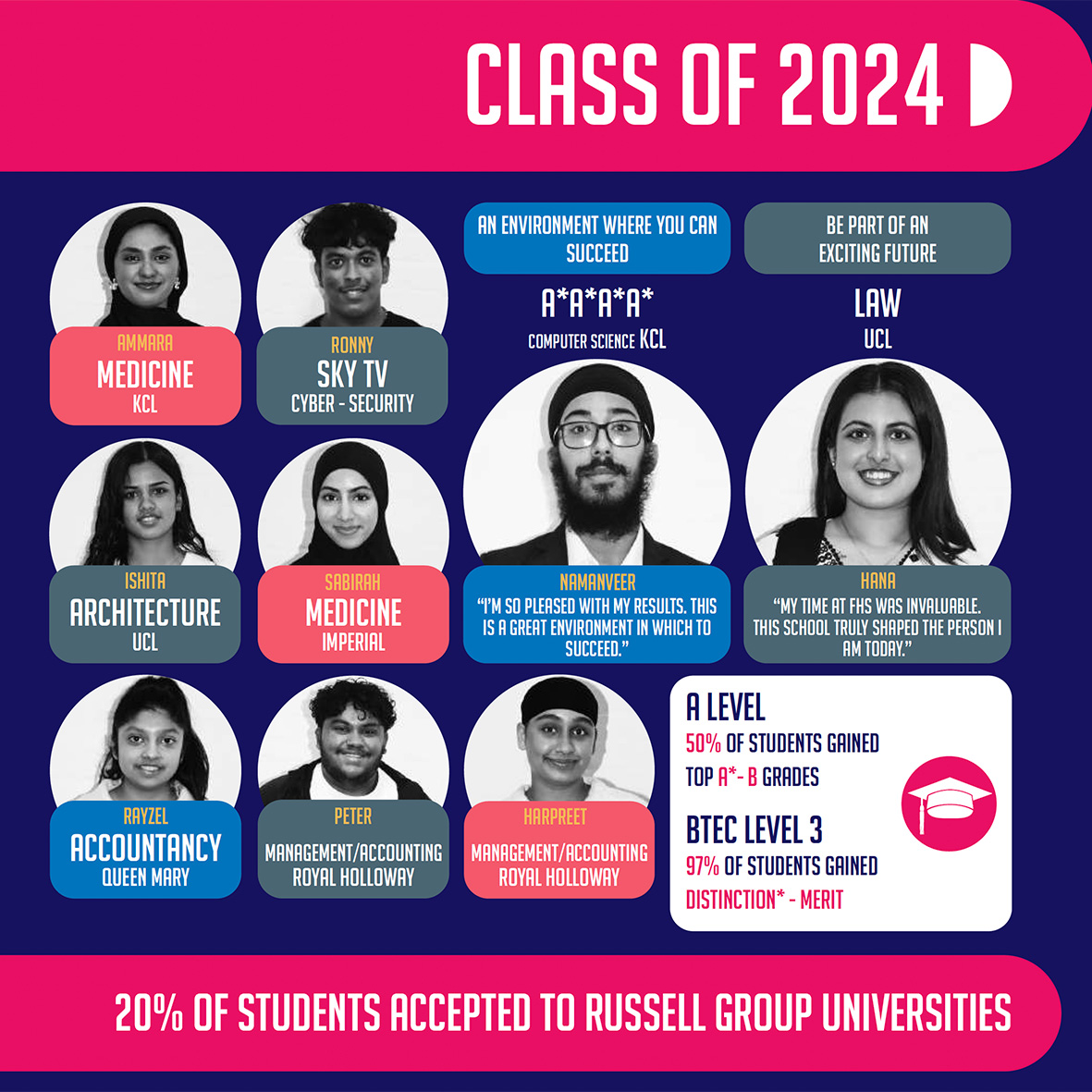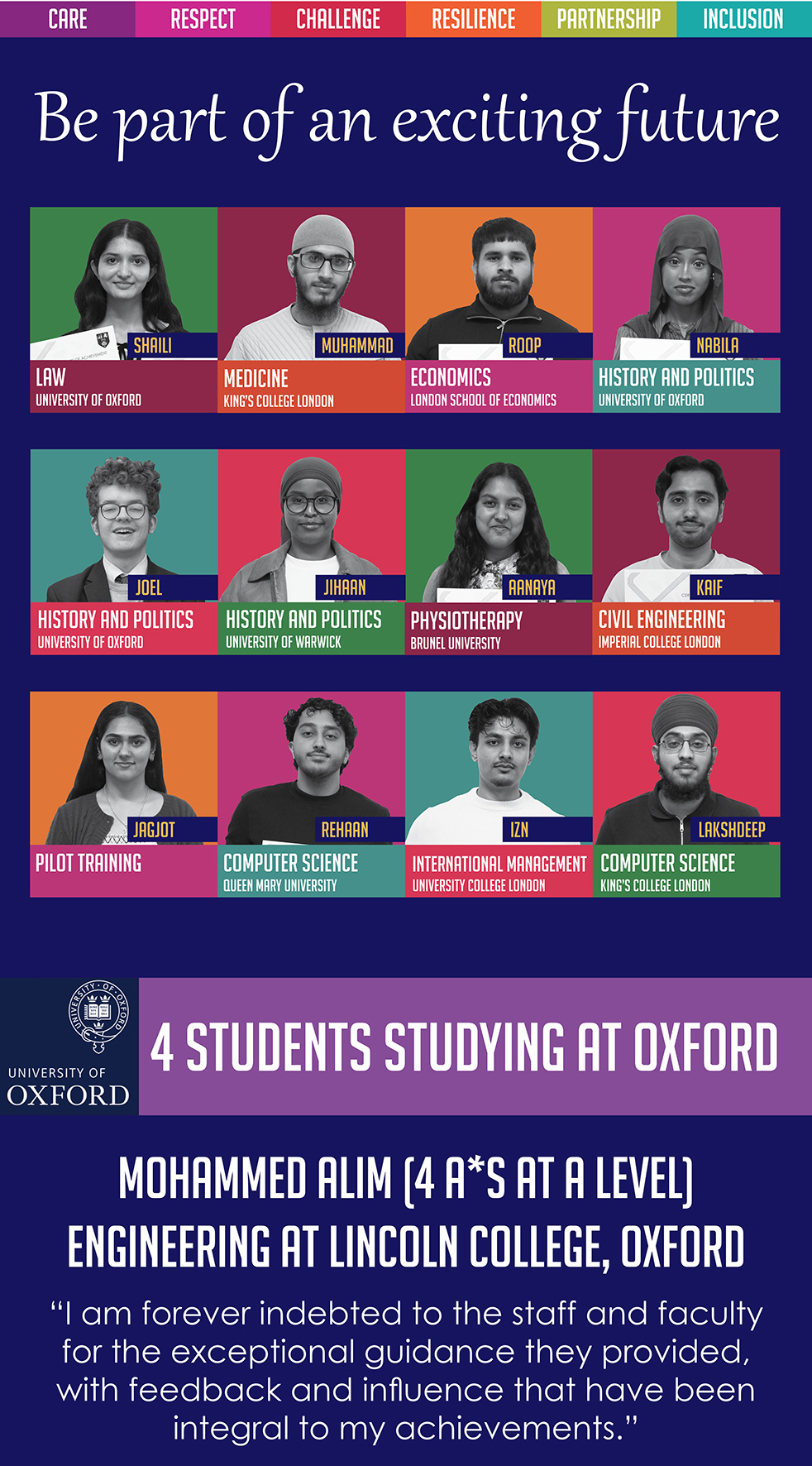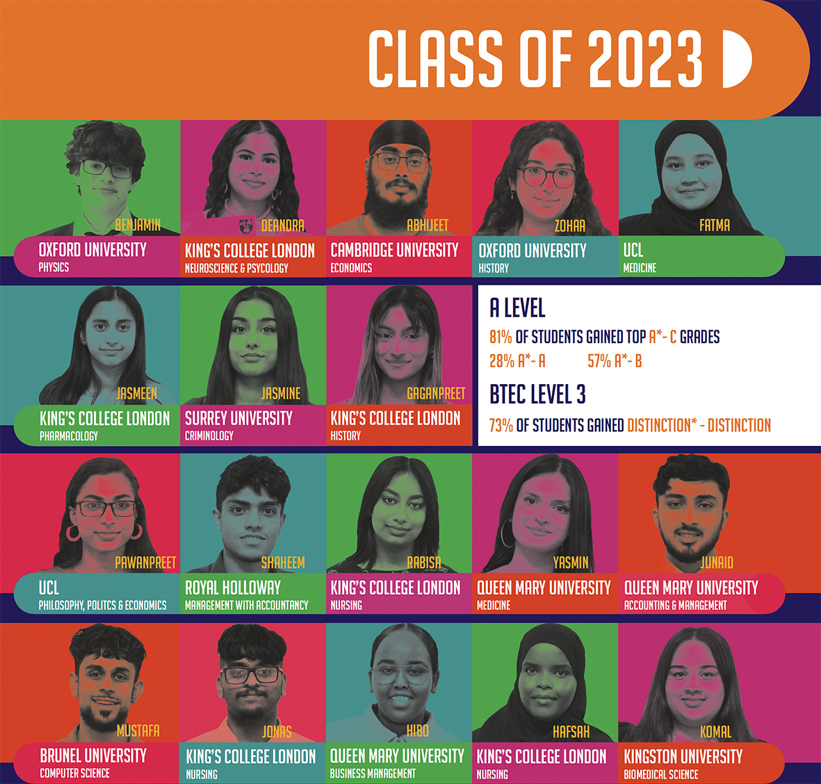 Our Class of 2025 achieved record breaking results and we have seen students move on to study at Oxford, top Russell Group University places including Economics at the LSE, Medicine at Kings and Civil Engineering at Imperial.